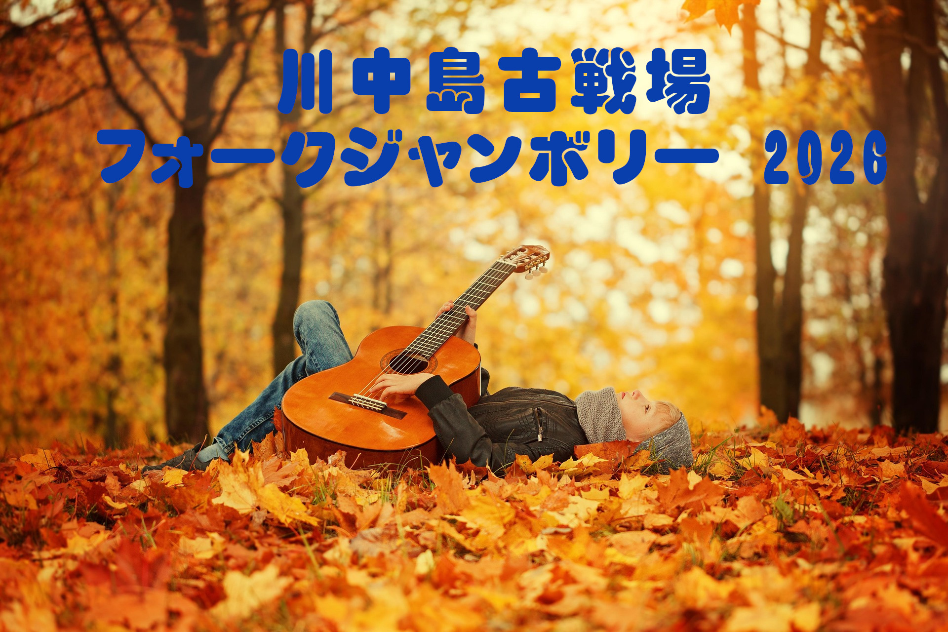 トップページ 2025.12.17 新着情報 NEW!第2回川中島古戦場フォークジャンボリーの詳細が決定‼️ お待たせしました。川中島古戦場FJ2026の開催概要が決定しました。詳しくは『開催概要』をご覧ください。実行委員会 2025.12.17 NEW!第2回 川中島古戦場FJ開催決定 拓郎age通信第2回 川中島古戦場フォークジャンボリー開催決定‼️開催日 2026年4月11日(土)詳細は全く未定ですが、ご参加希望のみなさんのスケジュールを調整していただきたく、一刻も早く開催日をお知らせします。 2025.12.17 共催・後援・協賛 共催 ・川中島古戦場三太刀桜まつり実行委員会 後援 ・・ 協賛 ・・